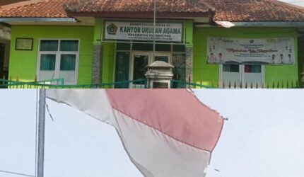 Sungguh Ironis, Bendera Merah Putih Robek dan Kusam Berkibar di Depan Kantor KUA Kecamatan Bungbulang Garut