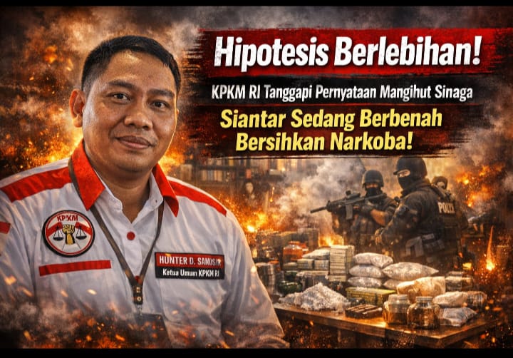 Pematangsiantar, Tribuncakranews.com // 13 Maret 2026 — Ketua Umum KPKM RI, Hunter D. Samosir, menanggapi pernyataan Anggota Komisi III DPR RI Mangihut Sinaga yang menyebut Kota Pematangsiantar berada pada peringkat pertama peredaran narkotika di Sumatera Utara. Menurutnya, pernyataan tersebut merupakan hipotesis yang berlebihan dan tidak sepenuhnya menggambarkan kondisi faktual di lapangan saat ini.
