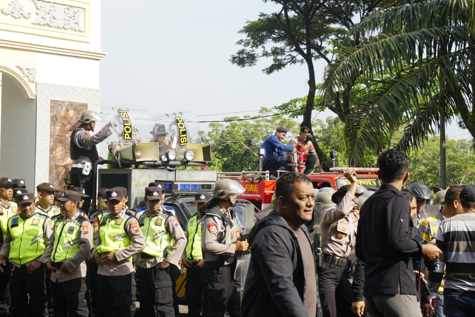 Tak hanya internal Polri, latihan ini juga melibatkan unsur lintas instansi seperti Satpol PP dan Pemadam Kebakaran sebagai bagian dari sistem pengamanan terpadu.