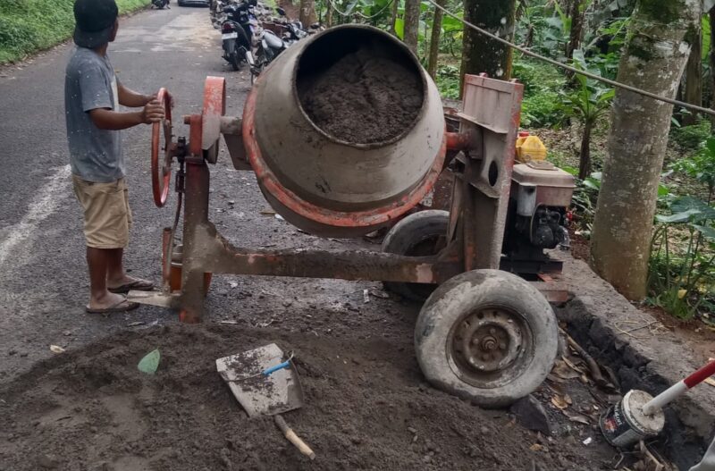 Tak hanya itu, proses pencampuran material menggunakan mesin molen juga diduga dilakukan tanpa takaran yang jelas sesuai spesifikasi teknis. Pada bagian dasar pekerjaan, tidak tampak adanya lantai kerja yang lazim digunakan untuk menjaga kualitas hasil konstruksi serta kestabilan struktur.