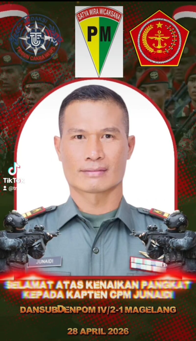 Magelang, Tribuncakranews.com // Selasa, 28 April 2026. Keluarga Besar TRIBUNCAKRANEWS.COM mengucapkan selamat dan sukses kepada KAPTEN CPM JUNAIDI atas amanah jabatan baru sebagai Dansubdenpom IV/2-1 Magelang.