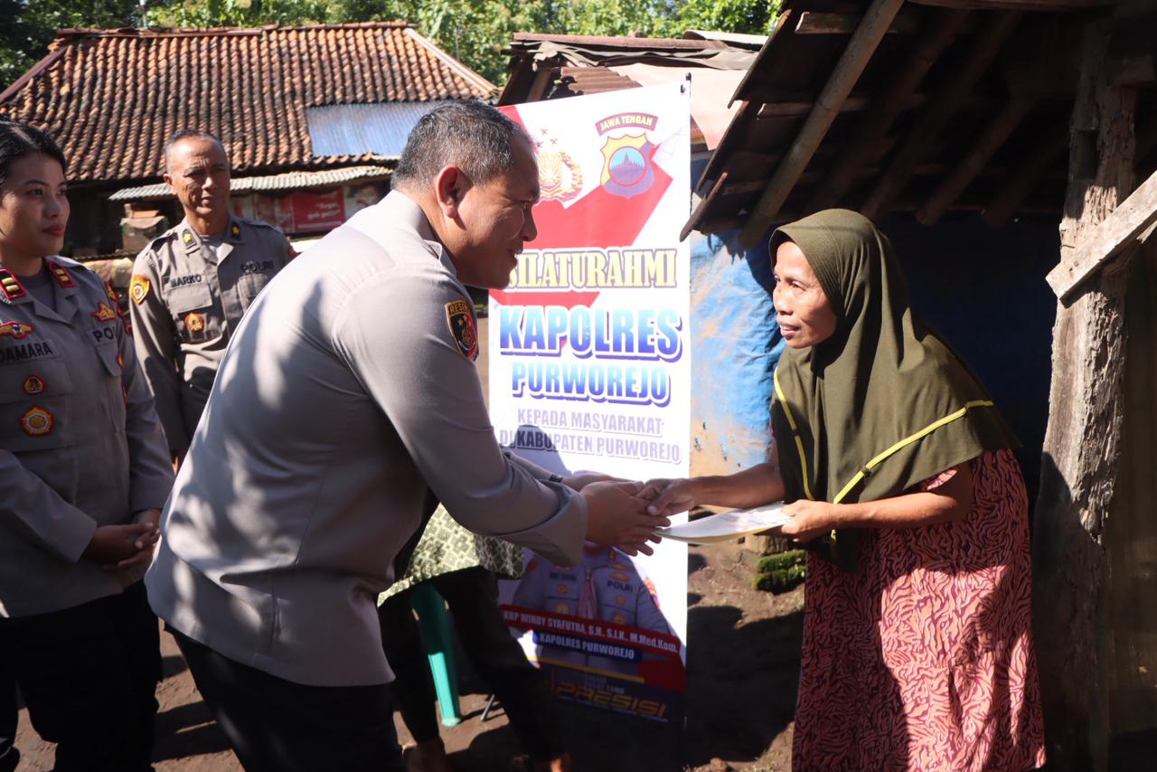 Dalam kegiatan tersebut, Kapolres Purworejo memberikan bantuan sembako kepada Mbah Sari (70), seorang lansia yang hidup seorang diri tanpa suami dan anak.