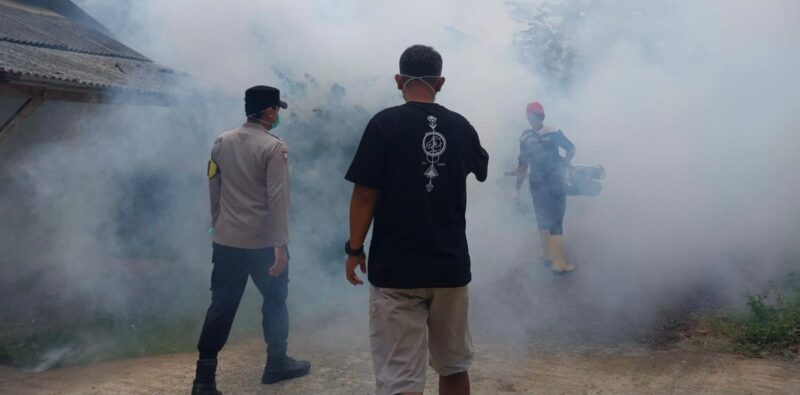 Bhabinkamtibmas Polsek Bungbulang Pantau Pelaksanaan Fogging di Desa Sinarjaya