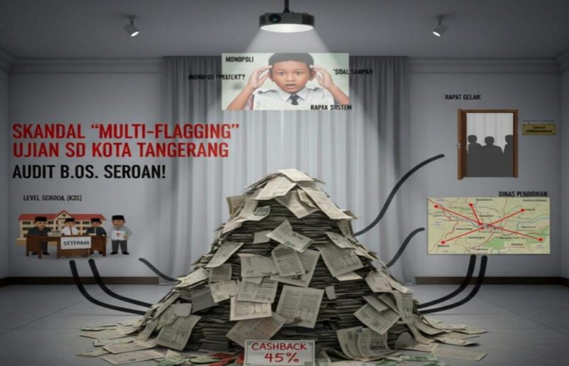 TANGERANG, TRIBUNCAKRANEWS.COM // Pendidikan dasar di Kota Tangerang tengah didera isu miring. Di balik lembaran kertas ujian ratusan ribu siswa Sekolah Dasar Negeri (SDN), terendus skema dugaan monopoli pengadaan cetak soal yang sistematis. Nama seorang oknum Kepala Sekolah sekaligus Ketua Kelompok Kerja Kepala Sekolah (K3S) berinisial R, mencuat sebagai aktor intelektual yang diduga mengendalikan proyek di 60 Sekolah Dasar Negri Kota Tangerang dari total 273 sekolah melalui strategi “banyak bendera”.
