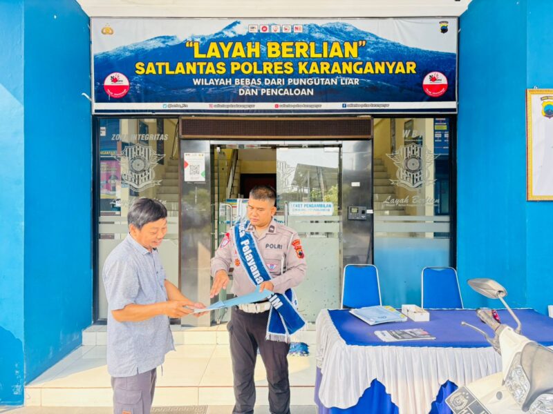 Karanganyar, Tribuncakranews.com — Suasana hangat dan penuh keakraban kembali terasa di Satpas Karanganyar pada Rabu (29/4/2026). Melalui kegiatan Polantas Menyapa, Satlantas Polres Karanganyar menghadirkan pelayanan yang tidak hanya profesional, tetapi juga humanis dan informatif bagi masyarakat yang mengurus pembuatan maupun perpanjangan Surat Izin Mengemudi (SIM).