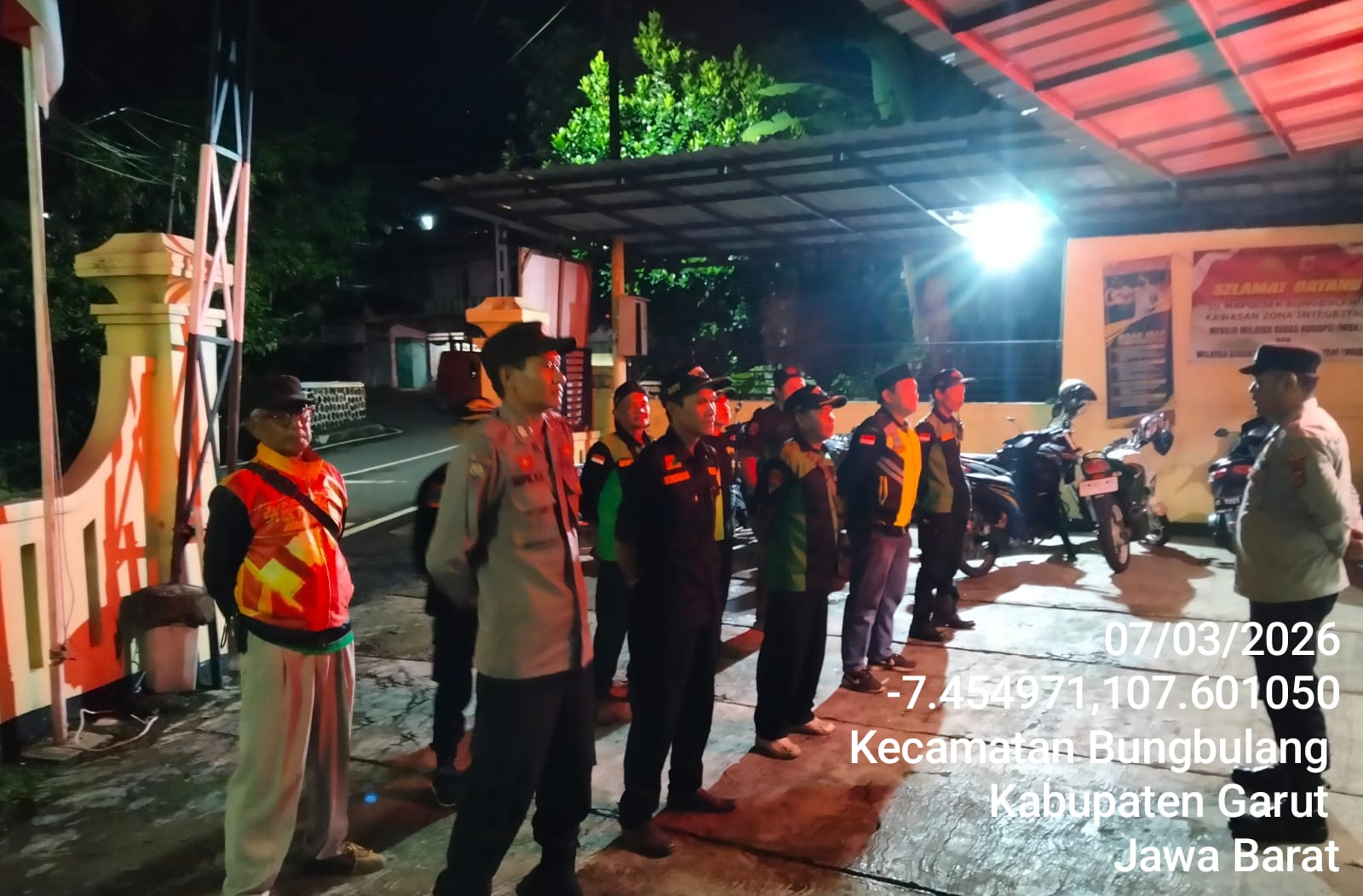 Kegiatan tersebut berlangsung pada pukul 20.30.WIB.di Halaman Kantor Polsek, Jalan Cibalubur, Desa Bungbulang, Kecamatan Bungbulang, Kabupaten Garut, sebagai langkah preventif untuk mengantisipasi potensi gangguan kamtibmas.