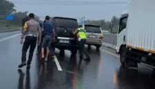 Sigap melihat mobil mogok ditengah lajur Tol, Kasat Lantas Polres Semarang turun tangan.