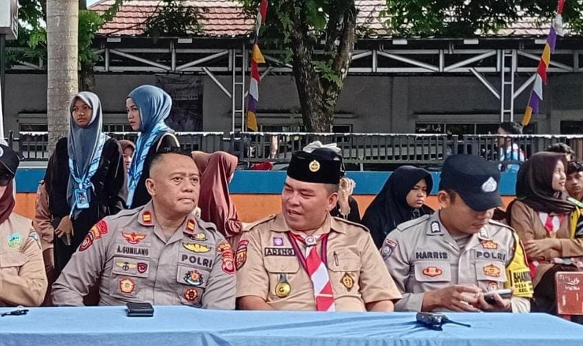 Kapolsek Bungbulang beserta anggota hadir salah satunya upaya menjaga keamanan dan ketertiban selama berlangsungnya acara pramuka yang melibatkan banyak peserta dari berbagai daerah.