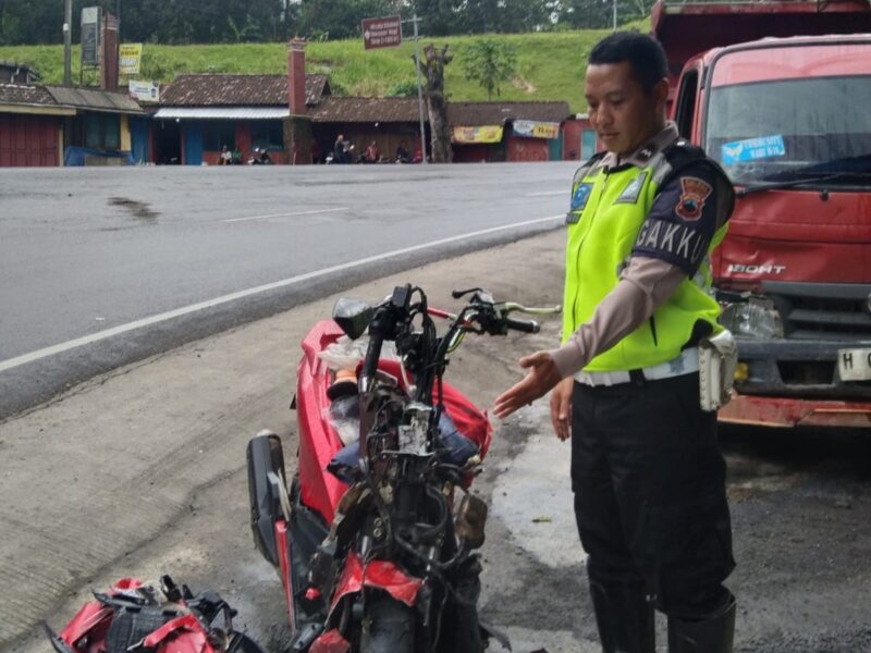 “Saat sampai di tikungan Kalimalang dan kondisi jalan menurun, pengemudi sepeda motor terlalu melambung melampaui marka dan saat bersamaan dari arah berlawanan, dari Ambarawa menuju ke Magelang Muncul truk dump H 9657 NA yang dikemudikan M. Roky (23 Th) warga Kab. Demak, lalu menabrak bagian depan kanan truk. Untuk pembonceng bernama Dimas (18 Th), juga warga Kab. Jepara. ” Tambahnya.