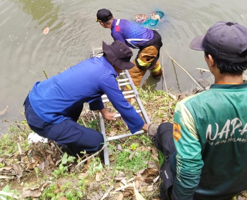 Setelah laporan diterima oleh pos Damkar terdekat langsung menuju lokasi dan langsung memasang garis pengaman dan dilakukan evakuasi Jenazahpun berhasil diangkat ke darat menggunakan alat khusus dan alat pelindung diri (APD) lengkap.