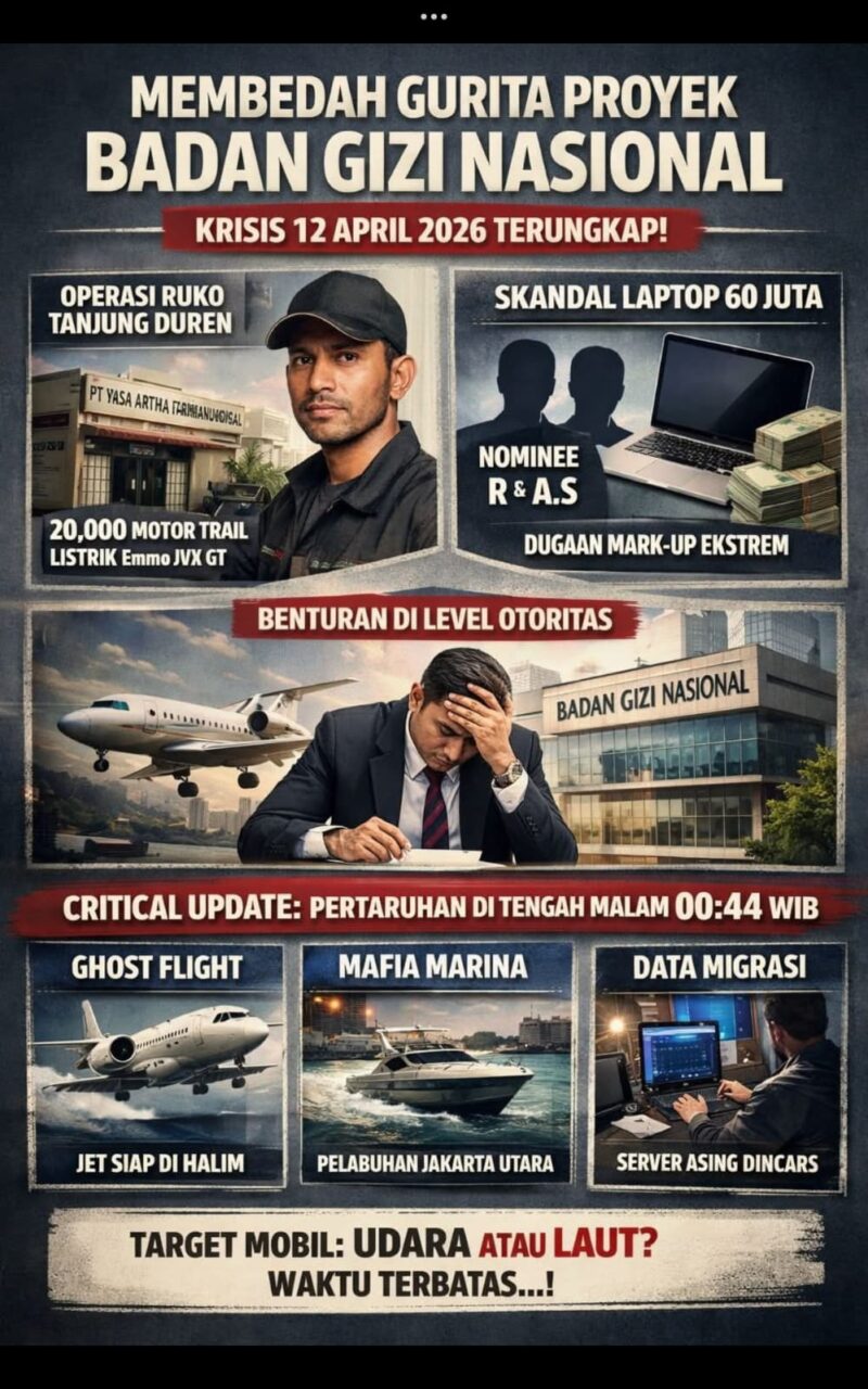 JAKARTA, Tribuncakranews. Com – Memasuki dini hari tanggal 12 April 2026, tabir yang menyelimuti pusaran proyek raksasa Badan Gizi Nasional (BGN) mulai tersingkap. Hasil audit investigatif terhadap data profil perusahaan (AHU), sistem lelang Inaproc, dan penelusuran lapangan mengungkap jaringan entitas yang kini berada dalam bidikan otoritas hukum.