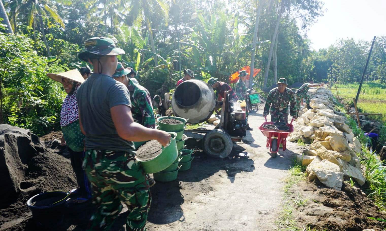 KULONPROGO, TRIBUNCAKRANEWS.COM // Meski dibawah terik sinar matahari, tidak mempengaruhi semangat kerja Satgas TMMD Reguler dan masyarakat, bangun talud jalan di wilayah Padukuhan Kwarakan, pada program TMMD Reguler ke-128 TA 2026, di wilayah Kalurahan Sidorejo, Kapanewon Lendah, Kabupaten Kulon Progo, Selasa (28/4/2026).