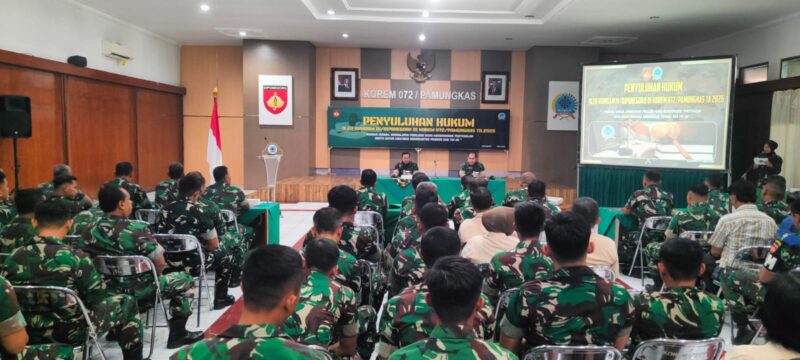 Yogyakarta, Tribuncakranews. com – Upaya meningkatkan kesadaran hukum di lingkungan prajurit terus dilakukan Korem 072/Pamungkas. Salah satunya melalui kegiatan penyuluhan hukum yang digelar bekerja sama dengan Kumdam IV/Diponegoro di Aula Sugiyono Makorem 072/Pamungkas, Yogyakarta, Senin (13/4/2026).