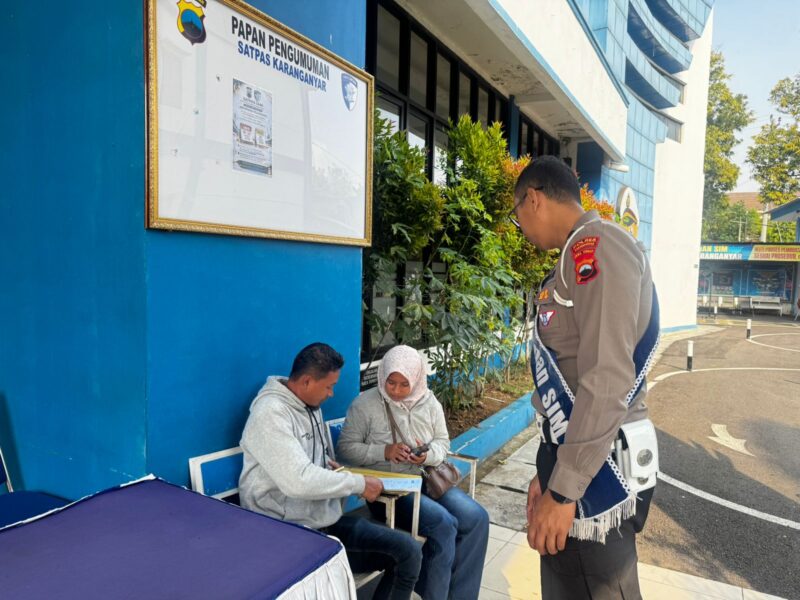 Karanganyar, Tribuncakranews. com — Satlantas Polres Karanganyar kembali melaksanakan kegiatan Polantas Menyapa di Satpas Karanganyar pada Jumat (17 April 2026) sebagai bentuk peningkatan kualitas pelayanan publik yang transparan dan mudah diakses oleh masyarakat.
