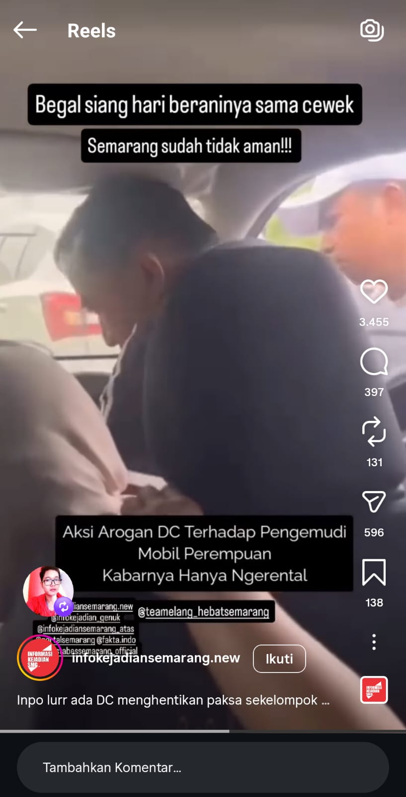 “Perjalanan korban awalnya berjalan normal. Namun setibanya di pintu keluar Tol Kaligawe, kendaraan mereka tiba-tiba dipepet dan dihentikan secara paksa oleh enam orang yang mengaku sebagai debt collector,” jelasnya.