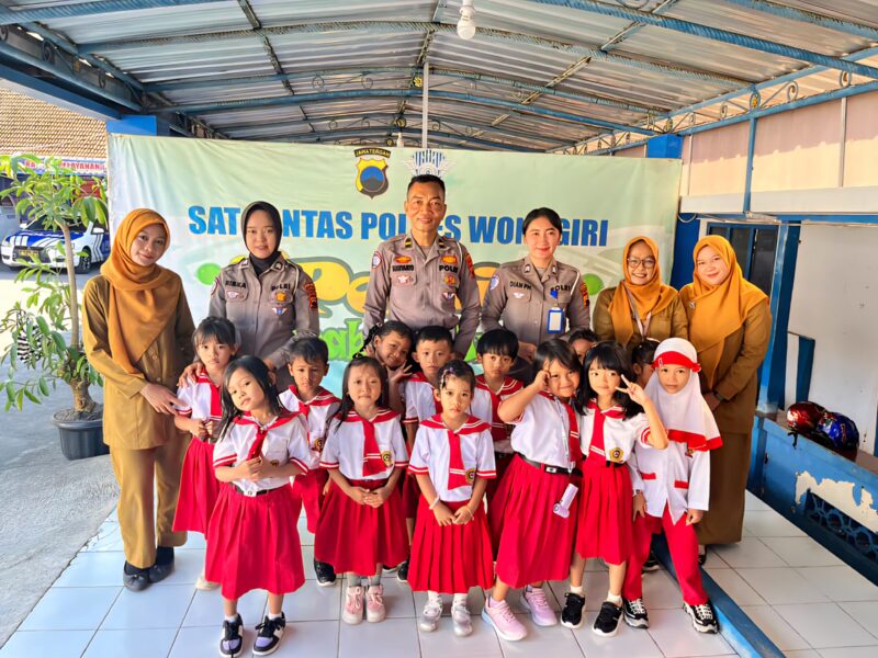 WONOGIRI, Tribuncakranews.com – Satuan Lalu Lintas Polres Wonogiri menggelar kegiatan Polisi Sahabat Anak (Polsanak) dengan mengajak puluhan siswa TK Siwi Peni 6 Wonogiri belajar tertib berlalu lintas di Mako Satlantas Polres Wonogiri, Senin (20/4/2026).