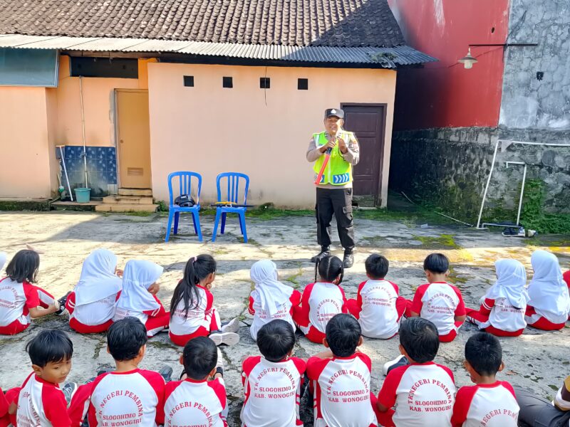 Kegiatan yang berlangsung mulai pukul 08.00 hingga 09.00 WIB tersebut diterima oleh Kanit Binmas Polsek Slogohimo Aipda Edi Sulistyo, S.H., mewakili Kapolsek Slogohimo IPTU Marman, S.H. Hadir dalam kegiatan itu Kepala TK Pembina Slogohimo Wartila Sari, S.Pd., para guru pendamping, serta 35 siswa-siswi.
