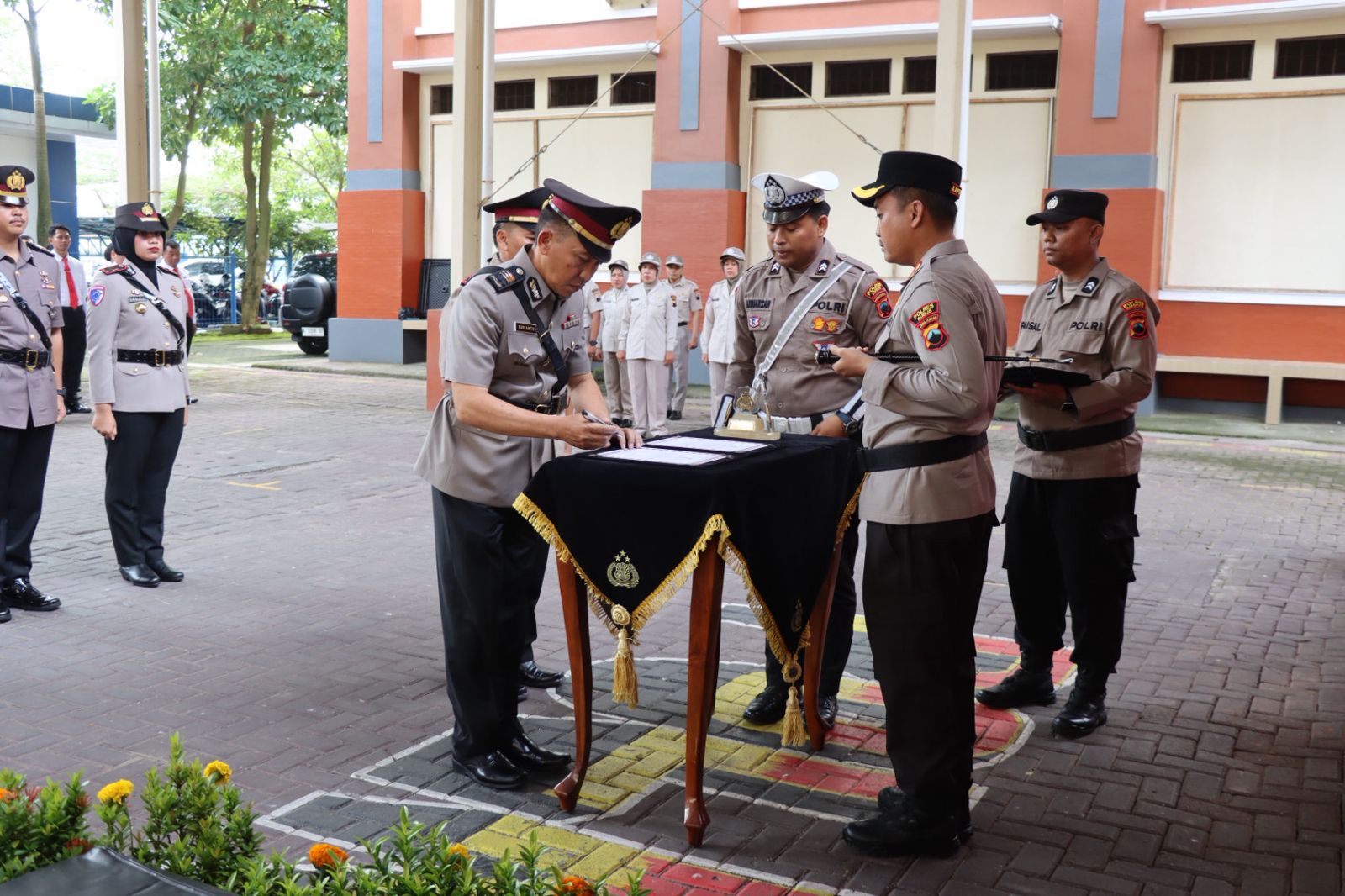 Dalam upacara tersebut, dilakukan pergantian jabatan Kabagren dari Kompol Bambang Sutaryo kepada Kompol Roy Irawan. Kemudian jabatan Kasatlantas diserahterimakan dari AKP Royke Noldy Darean kepada AKP Aulia Dwi Maha Putri.