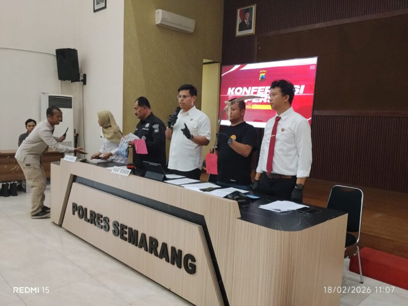 Konferensi Pers di Gedung Condrowulan Mapolres Semarang, Rabu (18/2/2026).