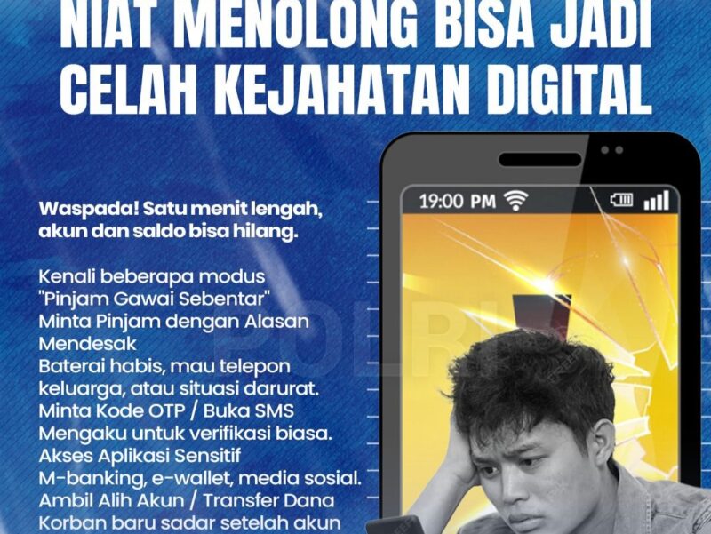 “Kami mengajak seluruh masyarakat untuk lebih berhati-hati, tidak mudah percaya, dan selalu menjaga kerahasiaan data pribadi. Jangan sampai hanya karena satu kalimat ‘pinjam sebentar’, kita harus menanggung kerugian besar,” katanya.