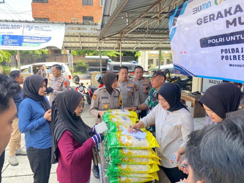 Kegiatan tersebut dilaksanakan pada Jumat (13/3/2026) sekitar pukul 09.00 WIB di halaman Polsek Kota Wonogiri dan mendapat sambutan antusias dari masyarakat yang hadir untuk memperoleh kebutuhan pokok dengan harga lebih murah.