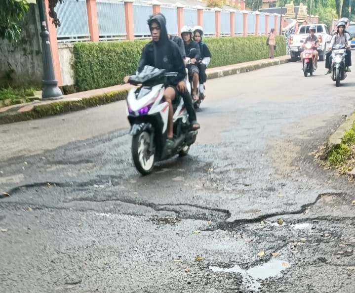 Terpantau awak media ketika melewati arah perum BTN Cihelet menuju persikas ditemukan jalan yang sudah terlihat rusak padahal diketahui jalan tersebut belum lama diperbaiki(diaspal),