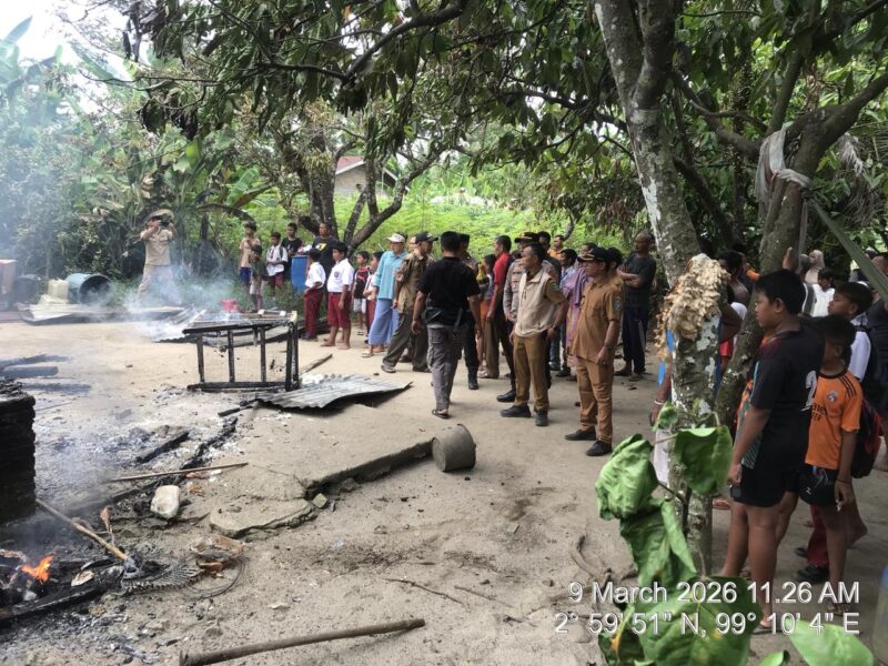SIMALUNGUN, TRIBUNCAKRANEWS.COM – Musibah datang tanpa permisi. Senin pagi, 9 Maret 2026, saat Wahyudi (55) tengah bekerja dan istrinya pergi menjemput cucu ke sekolah, rumah permanen mereka di Gang BKIA, Huta II A, Nagori Serapuh, Kecamatan Gunung Malela, Kabupaten Simalungun, tiba-tiba dilalap si jago merah. Tidak ada seorang pun di dalam rumah saat api mulai menjalar. Ketika kabar kebakaran itu sampai ke telinga Wahyudi, ia langsung meninggalkan pekerjaannya dan bergegas pulang — hanya untuk mendapati rumah yang sudah tinggal puing-puing berasap. Kerugian ditaksir mencapai Rp250 juta.
