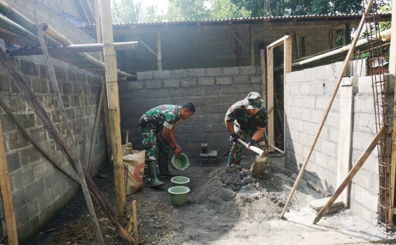 Rabu (29/4/2026), pengerjaan pembangunan sudah dilaksanakan beberapa hari yang lalu. Untuk pondasi rumah sudah ada dan saat ini pembangunan dalam tahap pemasangan dinding/tembok bangunan, kusen pintu dan kusen jendela. Satgas TMMD bersama warga bergotong royong bangun rumah layak huni untuk keluarga Pak Poniman.