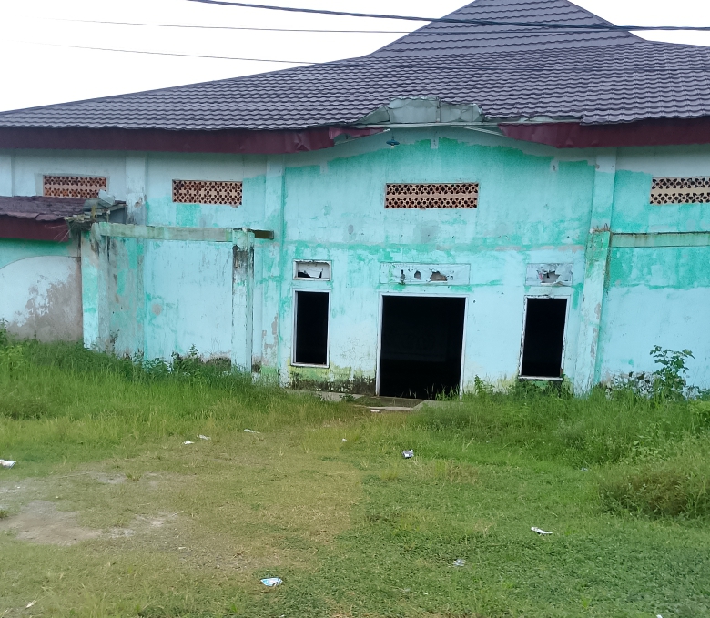 Berdasarkan pantauan di lokasi, kondisi fisik bangunan tampak terbengkalai dengan rumput liar yang menjulang tinggi menutupi area sekitar gedung. Kerusakan terlihat hampir di seluruh bagian, mulai dari atap yang bocor, dinding yang mulai retak dan kusam, hingga area dalam gedung yang dipenuhi debu dan kotoran.