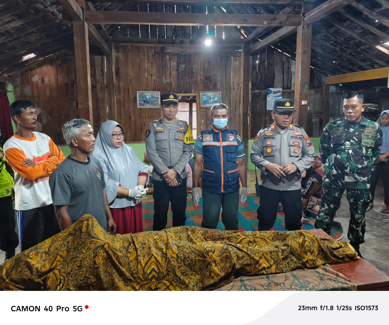 Mendapat laporan dari perangkat desa, jajaran Polsek Sambungmacan bergerak cepat menuju lokasi. Petugas piket jaga (Pamapta) bersama personel langsung melakukan pengamanan tempat kejadian perkara (TKP) guna menghindari kerumunan warga sekaligus memastikan tidak ada korban lain.