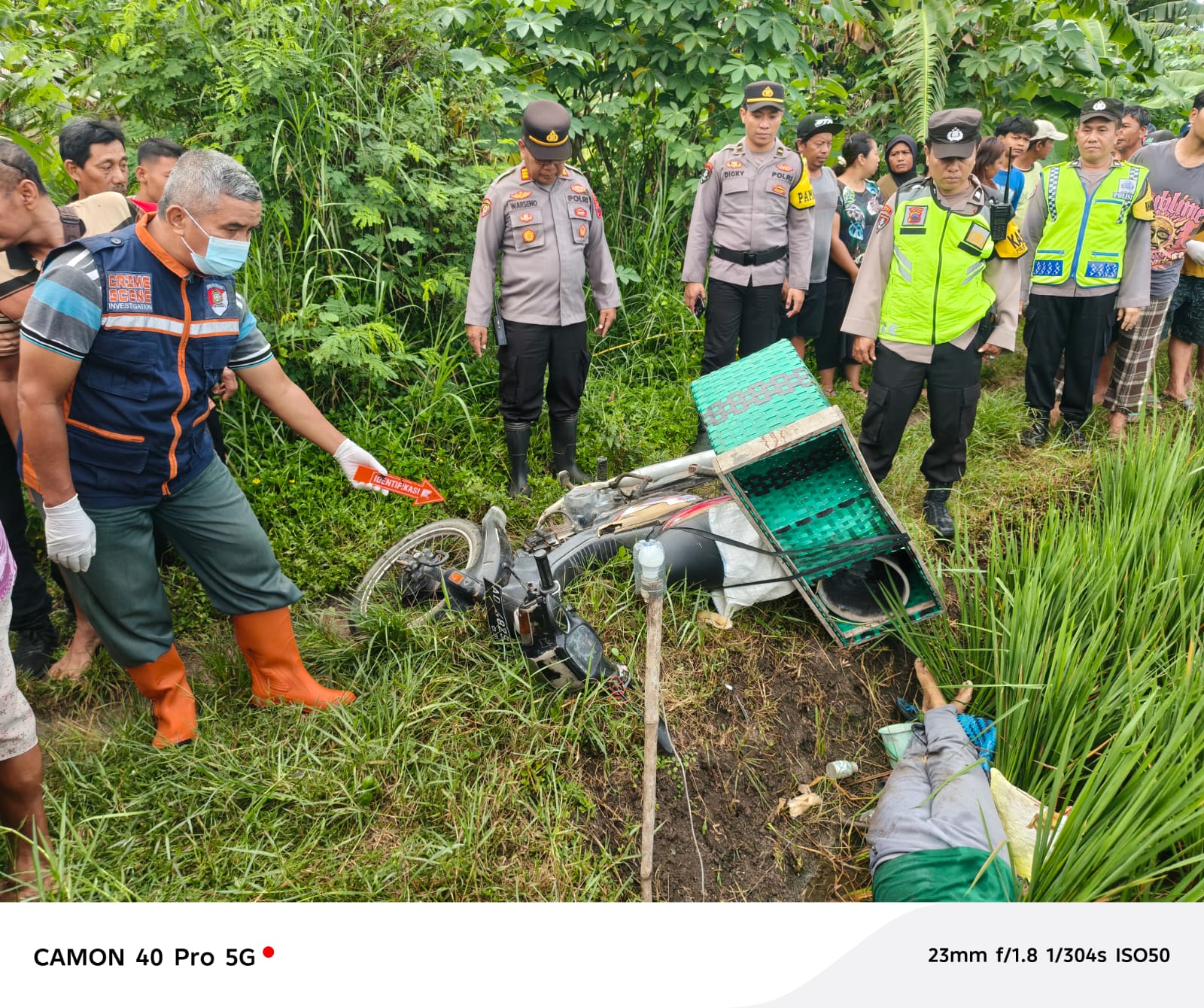 Selain itu, sepeda motor Honda Astrea milik korban juga ditemukan di lokasi dalam kondisi terjatuh.
